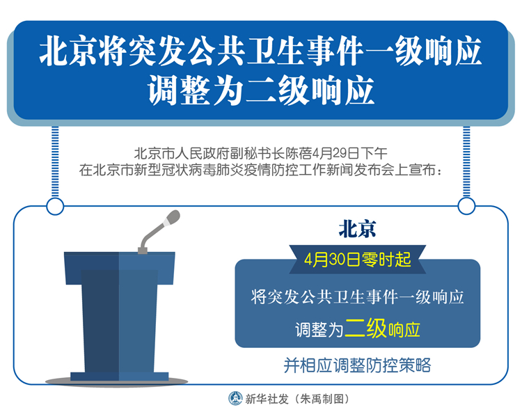 在29日召開的北京市新型冠狀病毒肺炎疫情防控工作新聞發(fā)布會上,北京市人民政府副秘書長陳蓓宣布:4月30日零時起,北京將突發(fā)公共衛(wèi)生事件一級響應調(diào)整為二級響應,并相應調(diào)整防控策略。北京調(diào)低應急響應級別,意味著什么?防控策略調(diào)整涉及哪些方面?根據(jù)29日發(fā)布會內(nèi)容,記者進行了梳理。