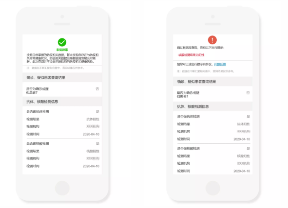 如核酸檢測結(jié)果為陽性,防疫健康信息則會出現(xiàn)“核酸檢測結(jié)果為陽性”的出行提示。
