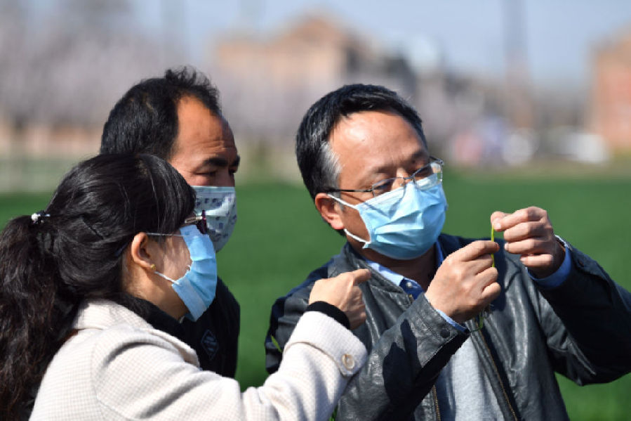 農(nóng)業(yè)科技特派員觀察小麥長勢 張博文 攝