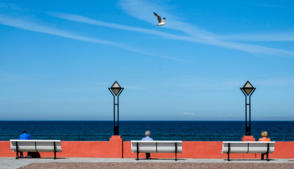 5月21日,在德國賓茨,人們坐在海邊的長椅上。歐洲地區(qū)新冠疫情持續(xù)緩解,多國已重新開放或計劃開放邊界,為即將到來的夏季旅游旺季創(chuàng)造條件。新華社/法新
