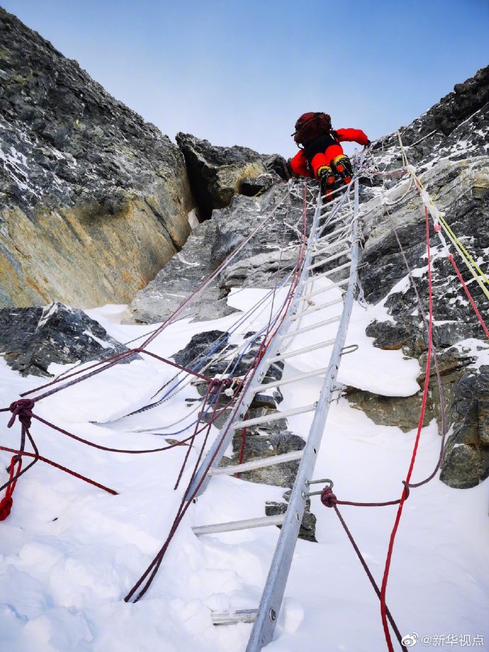 2020珠峰高程測量登山隊隊員已跨過第二臺階,準(zhǔn)備攀登第三臺階,進(jìn)行沖頂
