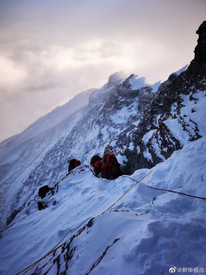 2020珠峰高程測(cè)量登山隊(duì)隊(duì)員正在通過(guò)8800米橫切-新華網(wǎng)