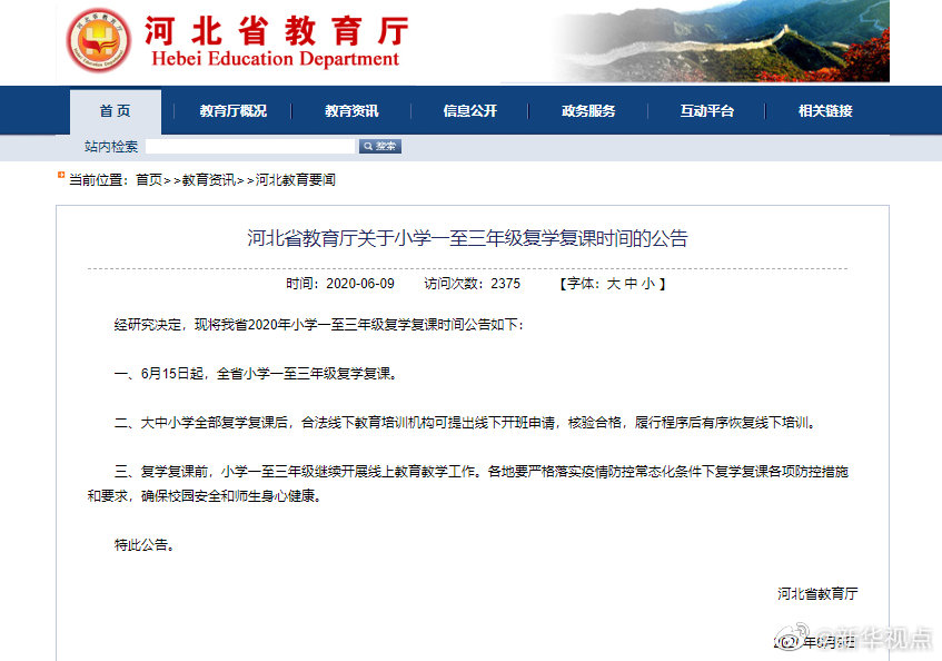記者9日從河北省教育廳獲悉,河北省6月15日起全省小學(xué)一至三年級復(fù)學(xué)復(fù)課。復(fù)學(xué)復(fù)課前,小學(xué)一至三年級繼續(xù)開展線上教育教學(xué)工作。河北省教育廳要求各地要嚴(yán)格落實疫情防控常態(tài)化條件下復(fù)學(xué)復(fù)課各項防控措施和要求,確保校園安全和師生身心健康。大中小學(xué)全部復(fù)學(xué)復(fù)課后,合法線下教育培訓(xùn)機構(gòu)可提出線下開班申請,核驗合格,履行程序后有序恢復(fù)線下培訓(xùn)。(記者李繼偉)