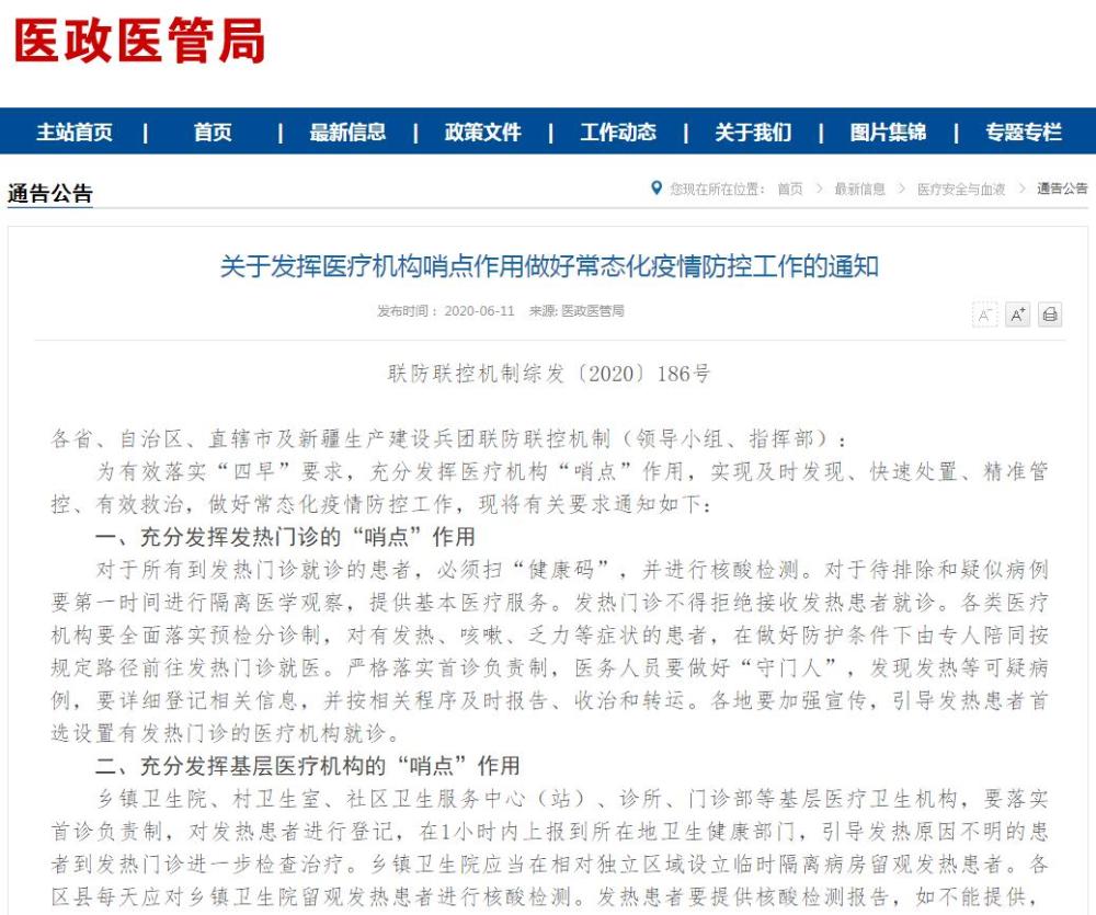 據(jù)國家衛(wèi)健委官網(wǎng)消息,11日國務院應對新型冠狀病毒肺炎疫情聯(lián)防聯(lián)控機制綜合組發(fā)布了《關于發(fā)揮醫(yī)療機構哨點作用做好常態(tài)化疫情防控工作的通知》,通知稱,對于所有到發(fā)熱門診就診的患者,必須掃“健康碼”,并進行核酸檢測。