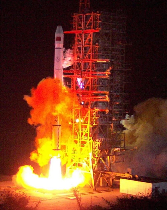 2003年5月25日零時(shí)34分,我國(guó)在西昌衛(wèi)星發(fā)射中心用“長(zhǎng)征三號(hào)甲”運(yùn)載火箭,成功地將第三顆“北斗一號(hào)”導(dǎo)航定位衛(wèi)星送入太空。新華社記者李剛攝(數(shù)碼傳真照片)