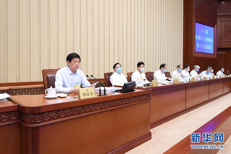 6月18日,十三屆全國人大常委會第十九次會議在北京人民大會堂舉行第一次全體會議,栗戰(zhàn)書委員長主持。 新華社記者 申宏 攝