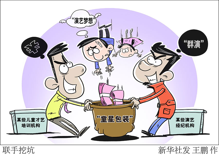 《瞭望》新聞周刊記者近日調(diào)研發(fā)現(xiàn),一些家長為了實現(xiàn)孩子的“演藝夢想”,一步步掉進(jìn)了一些兒童才藝培訓(xùn)機構(gòu)和演藝經(jīng)紀(jì)機構(gòu)聯(lián)手設(shè)置的高價陷阱,投訴無門。