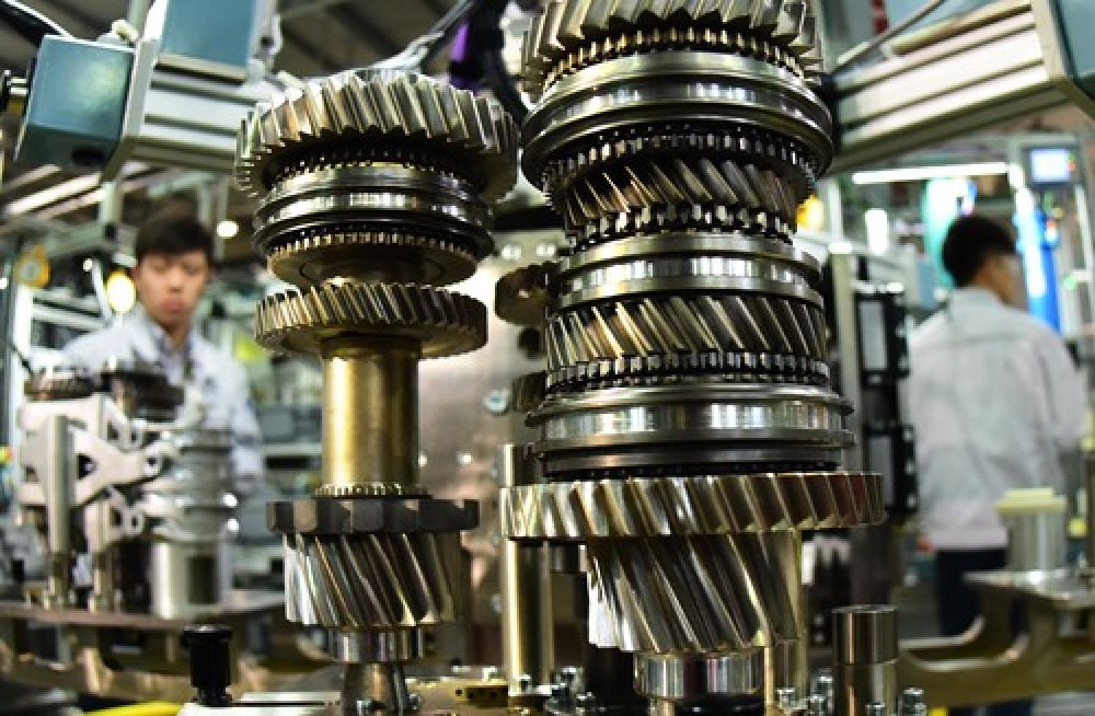 工人在湖北武漢東風(fēng)格特拉克汽車變速箱有限公司生產(chǎn)線上工作。(新華社記者程敏 攝)