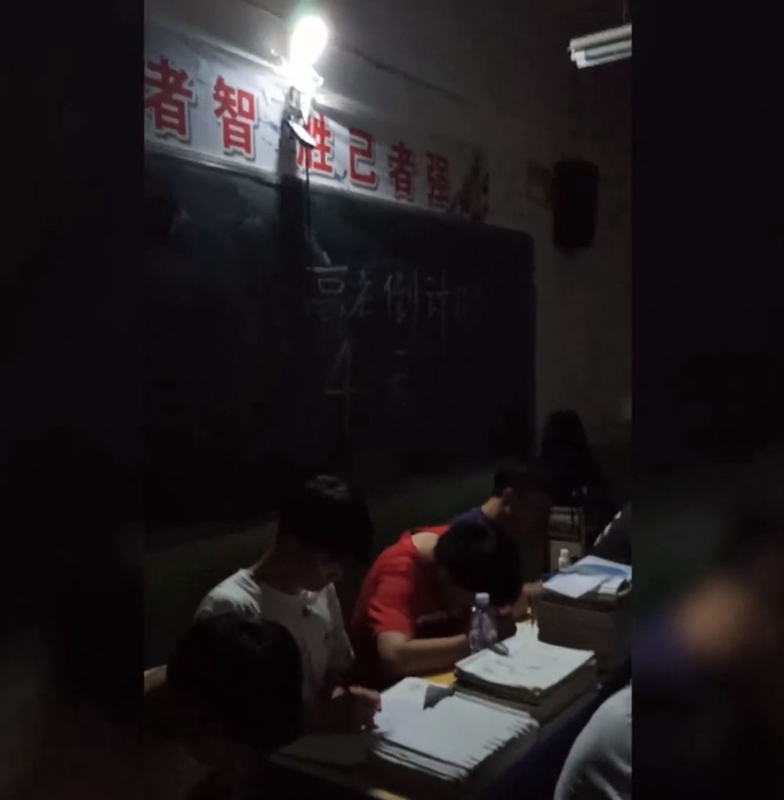 高三的學(xué)生們?yōu)樯贤碜粤?xí),將2盞臺燈掛到教室前后的黑板上,繼續(xù)學(xué)習(xí)。數(shù)學(xué)老師雷忠霖感動流淚,記錄下了這一幕。