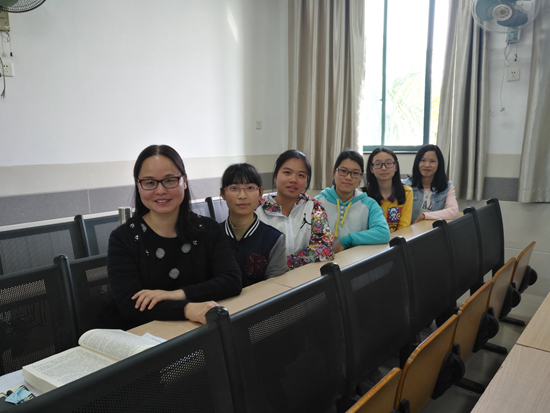 黃燈(左一)給2015級(jí)學(xué)生上課。受訪者提供
