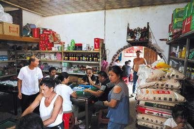 7月14日,江西省鄱陽縣龍口村小賣部,因為白天小賣部有電,所以吸引了不少村民在這里打牌娛樂。