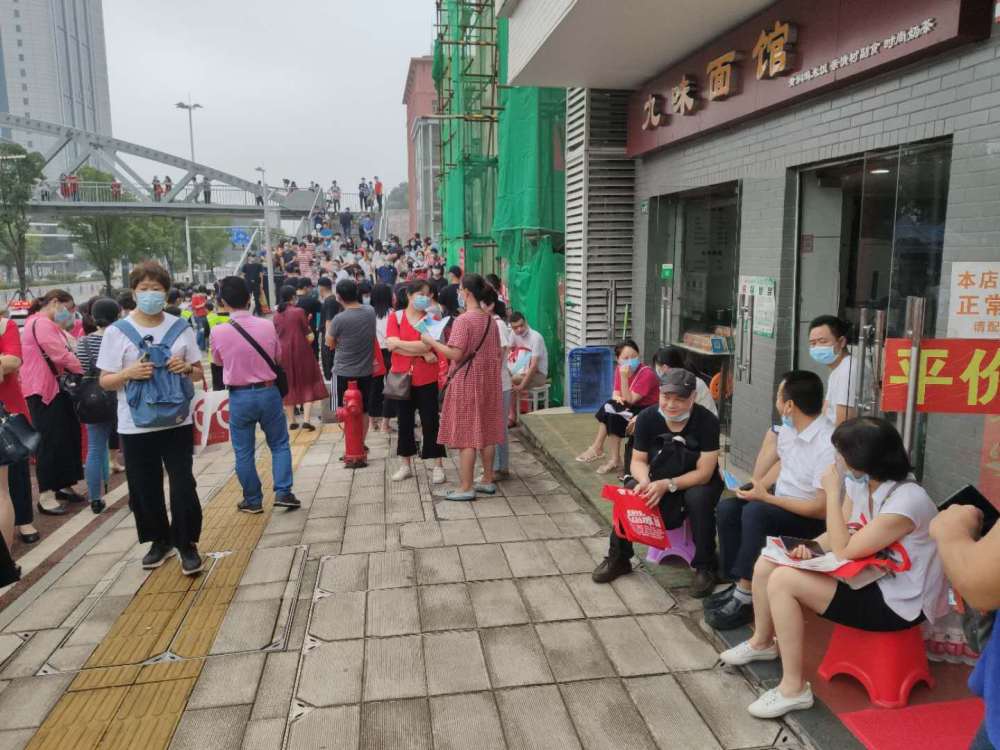 在武漢市江漢區(qū)最大的中考考點(diǎn)武漢市旅游學(xué)校,共有考生870人,設(shè)有32間考場,其中3個(gè)為備用考場??键c(diǎn)還增設(shè)了一名來自衛(wèi)生健康部門的副主考,以防出現(xiàn)考生發(fā)熱等狀況。此外,為應(yīng)對多雨天氣,考點(diǎn)將開放所有教學(xué)樓底端的架空層,供考生避雨。