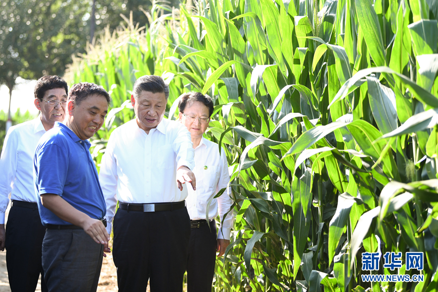 7月22日至24日,中共中央總書(shū)記、國(guó)家主席、中央軍委主席習(xí)近平在吉林省考察。這是7月22日下午,在四平市梨樹(shù)縣國(guó)家百萬(wàn)畝綠色食品原料(玉米)標(biāo)準(zhǔn)化生產(chǎn)基地核心示范區(qū)地塊,習(xí)近平走進(jìn)玉米地,了解農(nóng)業(yè)科技研發(fā)利用、黑土地保護(hù)情況。 新華社記者 燕雁 攝
