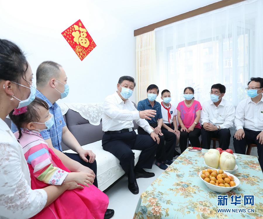 7月22日至24日,中共中央總書(shū)記、國(guó)家主席、中央軍委主席習(xí)近平在吉林省考察。這是7月23日下午,習(xí)近平在長(zhǎng)春市寬城區(qū)團(tuán)山街道長(zhǎng)山花園社區(qū),同居民趙興福一家嘮家常。 新華社記者 鞠鵬 攝