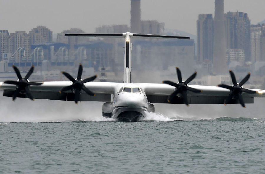 國(guó)產(chǎn)大型水陸兩棲飛機(jī)“鯤龍”AG600成功實(shí)現(xiàn)海上首飛