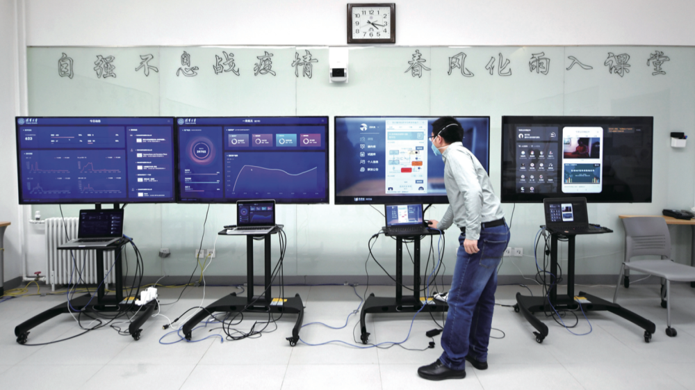 2月17日,工作人員在管理維護(hù)清華大學(xué)在線教學(xué)平臺 “雨課堂”(鞠煥宗/攝)