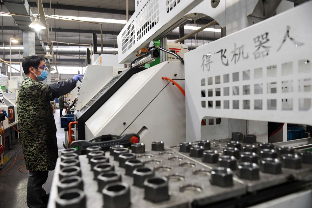 3月5日,在江西省宜春市一家企業(yè)車間內(nèi),工人在半自動化生產(chǎn)線上工作。各地工業(yè)企業(yè)在做好疫情防控的同時積極復(fù)工復(fù)產(chǎn)。新華社發(fā)(周亮 攝)