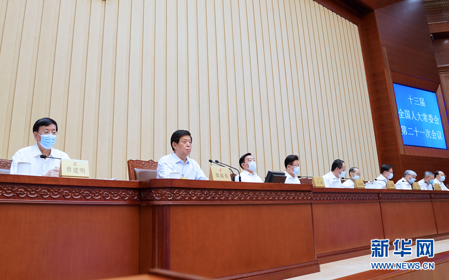 8月8日,十三屆全國人大常委會第二十一次會議在北京人民大會堂舉行第一次全體會議,栗戰(zhàn)書委員長主持。 新華社記者 張領(lǐng) 攝
