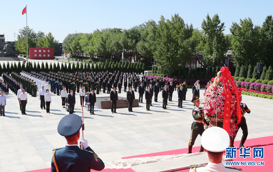 9月3日上午,習(xí)近平、李克強(qiáng)、栗戰(zhàn)書、汪洋、王滬寧、趙樂際、韓正、王岐山等黨和國家領(lǐng)導(dǎo)人來到中國人民抗日戰(zhàn)爭紀(jì)念館,出席紀(jì)念中國人民抗日戰(zhàn)爭暨世界反法西斯戰(zhàn)爭勝利75周年向抗戰(zhàn)烈士敬獻(xiàn)花籃儀式。 新華社記者 王曄 攝