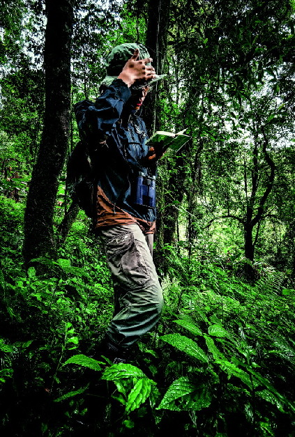 就是在這次調(diào)查過程中,飯飯那雙登山靴“本來好端端的一部分被永遠(yuǎn)留在了山上”。一路手腳并用、氣喘吁吁,還要時(shí)刻提防被樹枝啪啪打臉,飯飯覺得山里“完全沒有路”;讓她驚嘆的是,身邊的祝常悅居然可以在密林深處走得“一陣清風(fēng)如履平地”,還有精力隨手拍下一條盤亙?cè)诼淙~上的竹葉青蛇。飯飯還沒想明白,常悅站長(zhǎng)這種“地上無路,腳下有路”的境界是怎么“修煉”出來的。