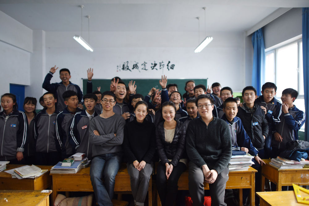 ↑支教團成員和湟中一中學生合影