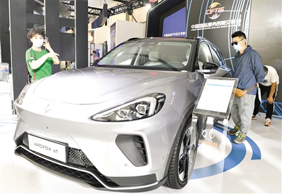 9月5日,觀眾在服貿(mào)會(huì)5G通信服務(wù)專題展區(qū)參觀一款5G智能汽車。記者 張晨霖 攝