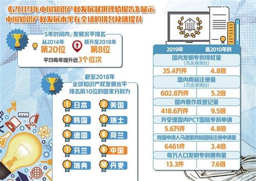 我國知識(shí)產(chǎn)權(quán)發(fā)展水平躍居全球第八