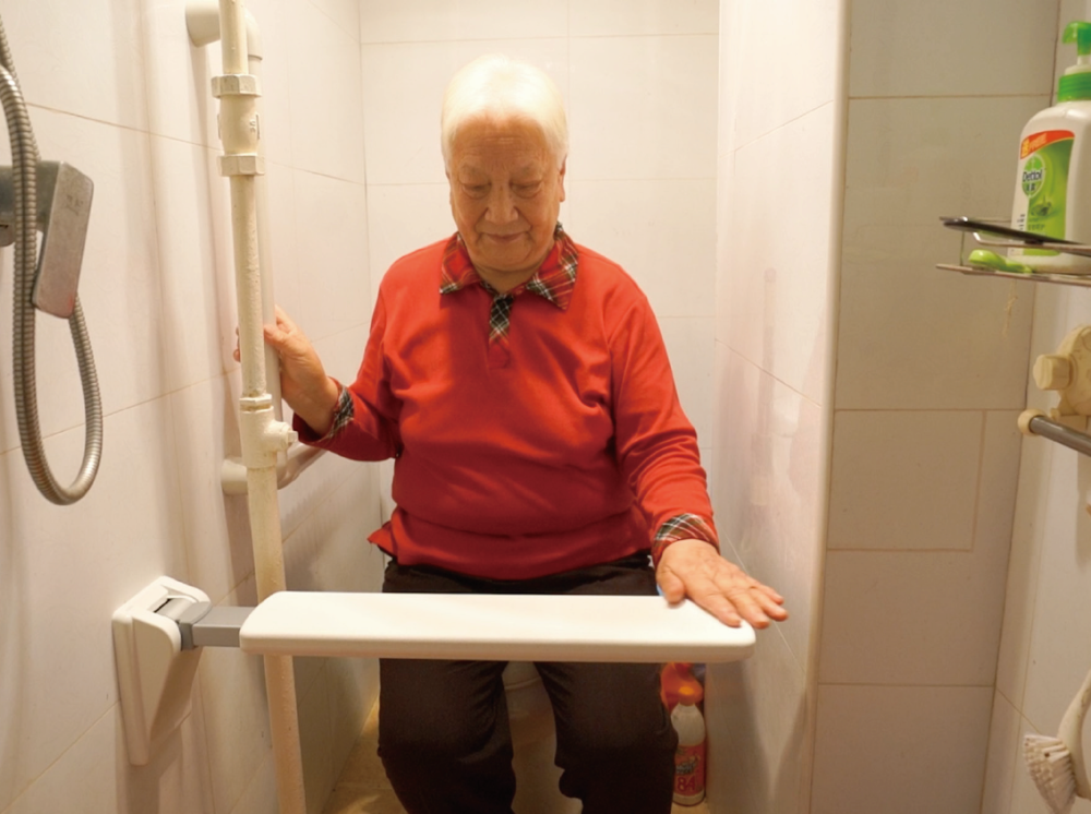 在蔡琴英的家里,本刊記者聽她一一講解、展示了適老化改造的成果:床邊的應(yīng)急呼叫報警裝置、走廊墻角的紅外感應(yīng)夜燈、浴室里的防滑坐浴椅和防滑墊……