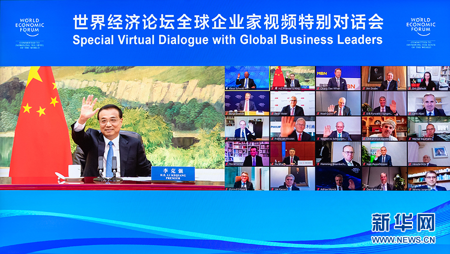 9月15日,國務(wù)院總理李克強(qiáng)在北京人民大會(huì)堂出席世界經(jīng)濟(jì)論壇全球企業(yè)家特別對(duì)話會(huì),發(fā)表致辭并同企業(yè)家代表互動(dòng)交流。對(duì)話會(huì)以視頻方式舉行。 新華社記者 翟健嵐 攝