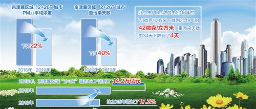 與此同時,2019年京津冀區(qū)域“2+26”城市生產(chǎn)總值達(dá)到14.2萬億元,比2016年增長了17.2%。