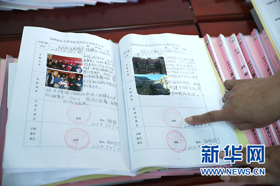 玉樹州基層干部學院李玉蘭院長介紹學員考核手冊。新華網記者焦鵬攝