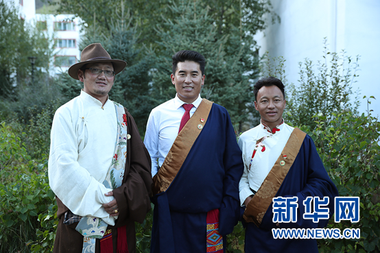 玉樹州基層干部學院一期學員江加多杰(左一)和同學在一起。新華網記者焦鵬攝
