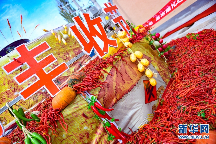 2020年慶祝中國農(nóng)民豐收節(jié)暨循化縣消費扶貧“辣椒節(jié)”現(xiàn)場展示的各類農(nóng)作物。(新華網(wǎng)潘彬彬攝)