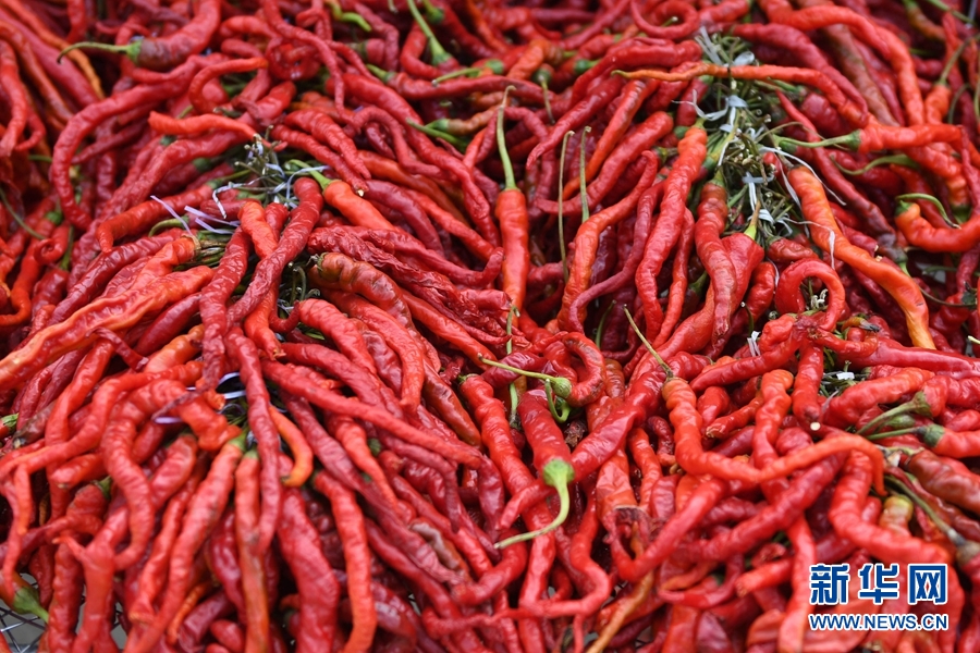 2020年慶祝中國(guó)農(nóng)民豐收節(jié)暨循化縣消費(fèi)扶貧“辣椒節(jié)”現(xiàn)場(chǎng)展示銷售的線辣椒。(新華網(wǎng)潘彬彬攝)