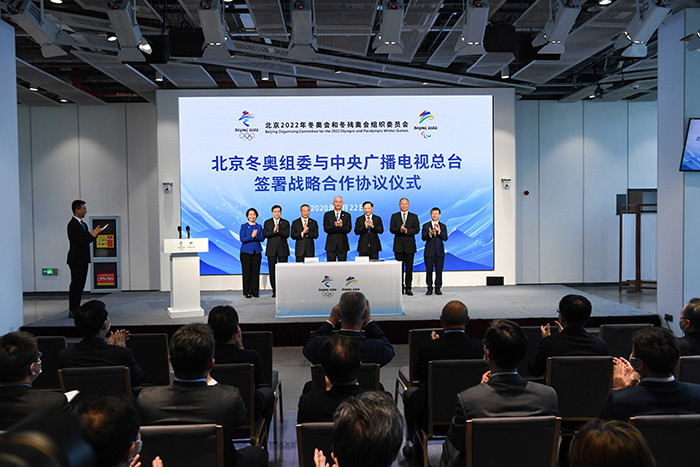 在北京冬奧會倒計(jì)時(shí)500天之際,2020年9月22日上午,中央廣播電視總臺與北京冬奧組委簽署《相約北京系列冬季體育賽事轉(zhuǎn)播工作框架合同》和《北京冬奧會電視轉(zhuǎn)播科技創(chuàng)新應(yīng)用及科技冬奧重點(diǎn)專項(xiàng)技術(shù)協(xié)同戰(zhàn)略合作框架協(xié)議》,標(biāo)志著雙方冬奧宣傳轉(zhuǎn)播報(bào)道、科技創(chuàng)新引領(lǐng)合作進(jìn)入新階段。