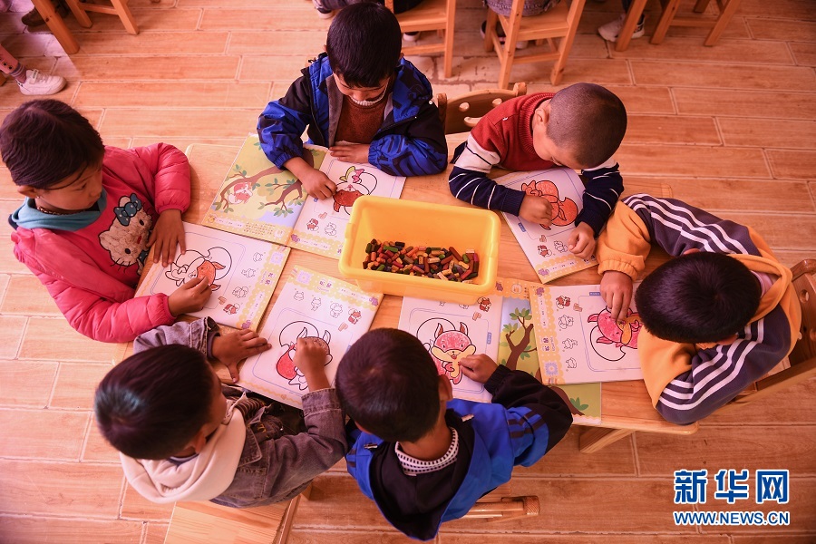 9月17日,在青海省果洛藏族自治州瑪沁縣拉加鎮(zhèn)中心幼兒園,孩子們正專(zhuān)心上著美術(shù)課。(新華網(wǎng)潘彬彬 攝)