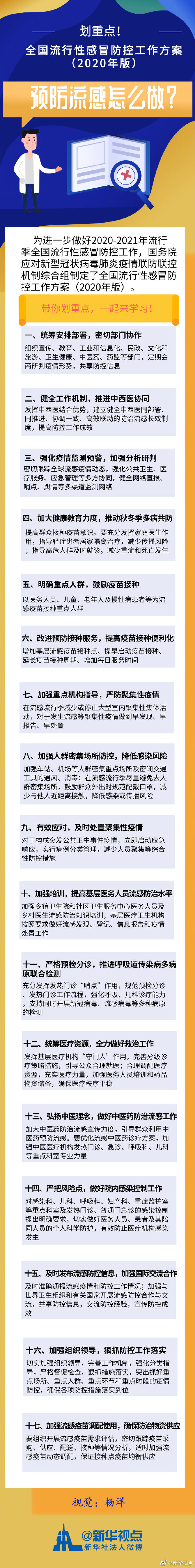 為進(jìn)一步做好2020-2021年流行季全國流行性感冒防控工作,國務(wù)院應(yīng)對(duì)新型冠狀病毒肺炎疫情聯(lián)防聯(lián)控機(jī)制綜合組制定了全國流行性感冒防控工作方案(2020年版),一起來學(xué)習(xí)! ?????