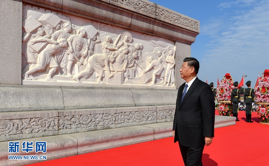 9月30日上午,黨和國家領(lǐng)導(dǎo)人習(xí)近平、李克強(qiáng)、栗戰(zhàn)書、汪洋、王滬寧、趙樂際、韓正、王岐山等來到北京天安門廣場(chǎng),出席烈士紀(jì)念日向人民英雄敬獻(xiàn)花籃儀式。這是習(xí)近平瞻仰人民英雄紀(jì)念碑。 新華社記者 岳月偉 攝