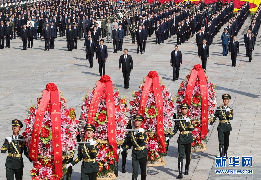 9月30日上午,黨和國家領(lǐng)導(dǎo)人習(xí)近平、李克強(qiáng)、栗戰(zhàn)書、汪洋、王滬寧、趙樂際、韓正、王岐山等來到北京天安門廣場(chǎng),出席烈士紀(jì)念日向人民英雄敬獻(xiàn)花籃儀式。 新華社記者 謝環(huán)馳 攝