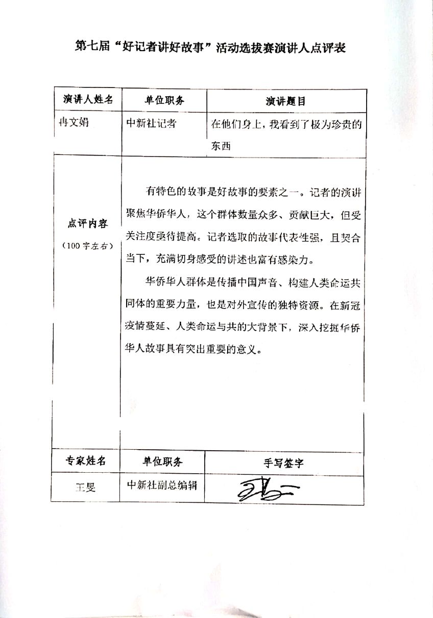 王旻點評冉文娟《在他們身上,我看到了極為珍貴的東西》