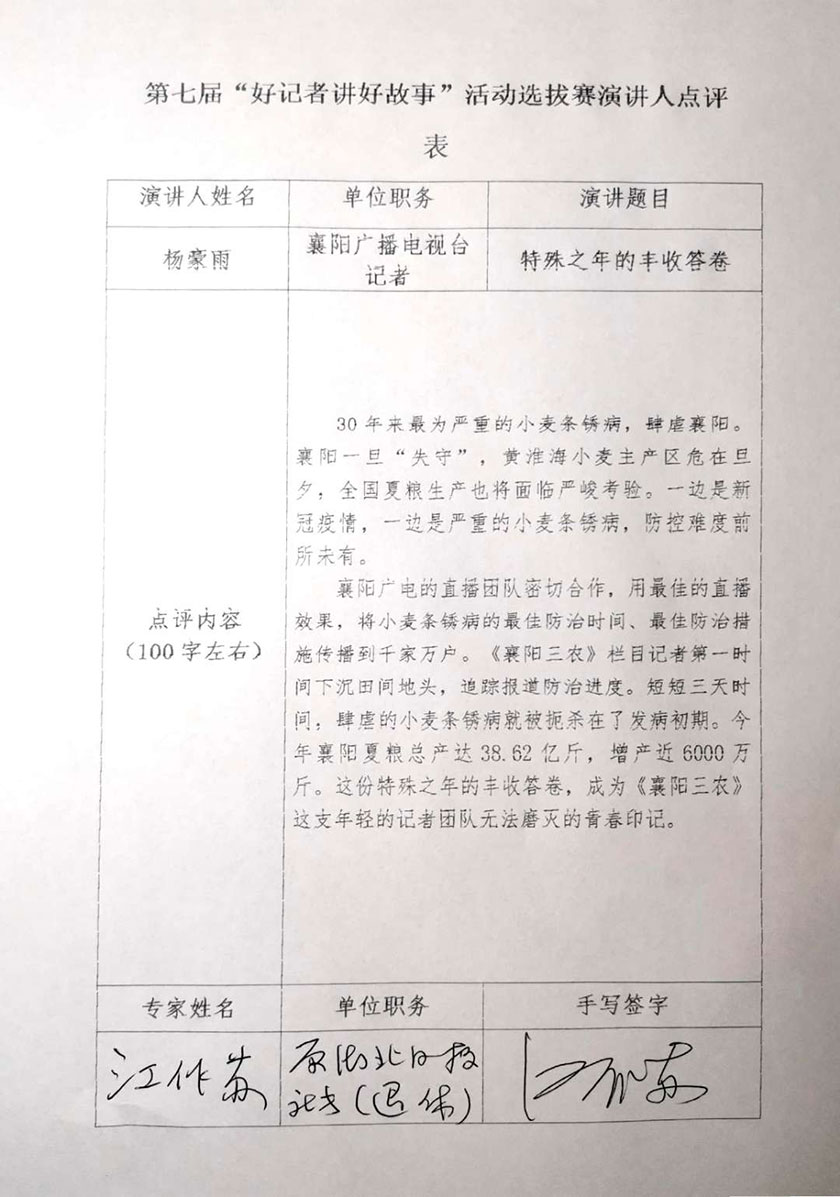 江作蘇點評楊豪雨《特殊之年的豐收答卷》