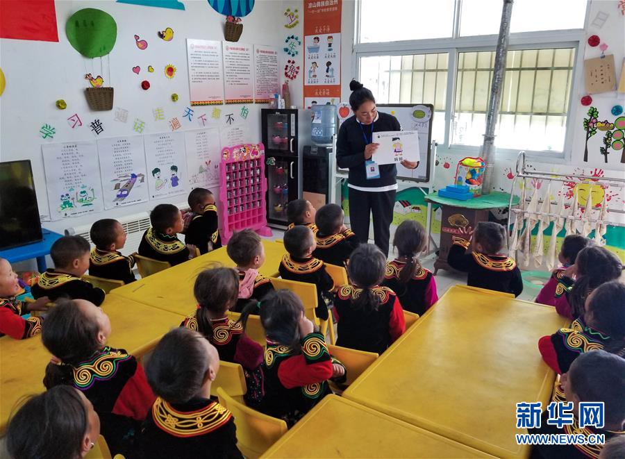 昭覺縣火普村幼教點老師在給孩子們上課。攝于2019年3月。新華社發(fā)