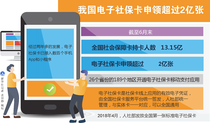 新華社北京10月6日電(記者姜琳)人力資源和社會(huì)保障部近日發(fā)布的數(shù)據(jù)顯示,截至6月末,全國(guó)社會(huì)保障卡持卡人數(shù)13.15億,電子社保卡申領(lǐng)超過(guò)2億張,26個(gè)省份的189個(gè)地區(qū)開(kāi)通電子社??ㄒ苿?dòng)支付應(yīng)用。