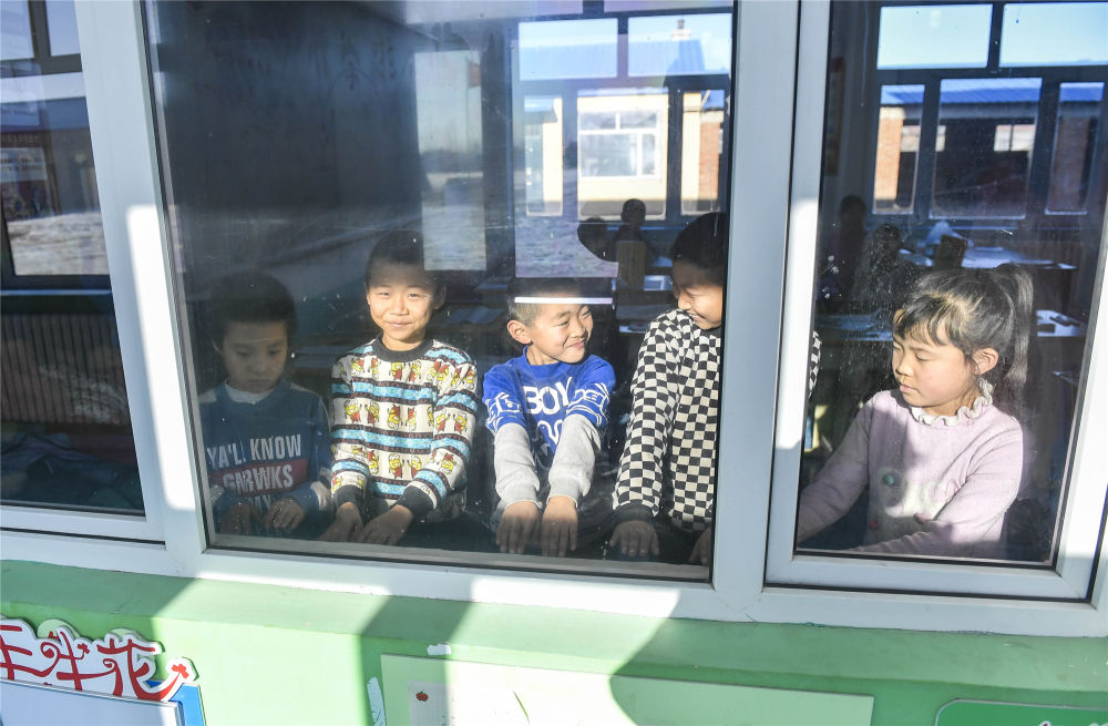 吉林省德惠市邊崗鄉(xiāng)臥虎村小學學生在戶外活動后圍著教室內(nèi)的環(huán)流散熱器取暖(2018年12月26日攝)。新華社記者 許暢 攝
