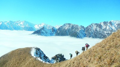 翻越山脊的臥龍調(diào)查小分隊(duì) 林紅強(qiáng)攝/光明圖片