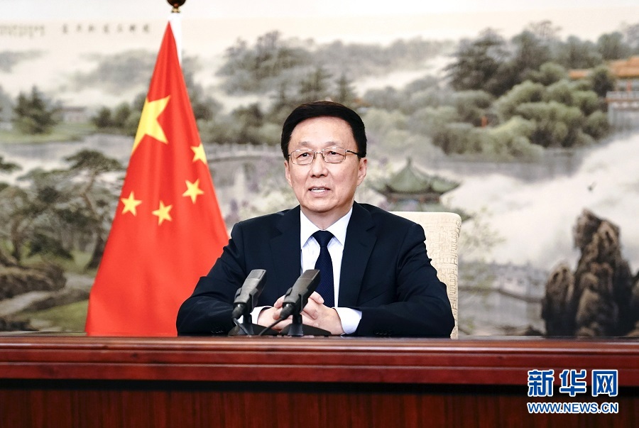 11月10日,博鰲亞洲論壇國(guó)際科技與創(chuàng)新論壇首屆大會(huì)開(kāi)幕式在澳門舉行。中共中央政治局常委、國(guó)務(wù)院副總理韓正以視頻方式發(fā)表主旨演講。 新華社記者 丁林 攝