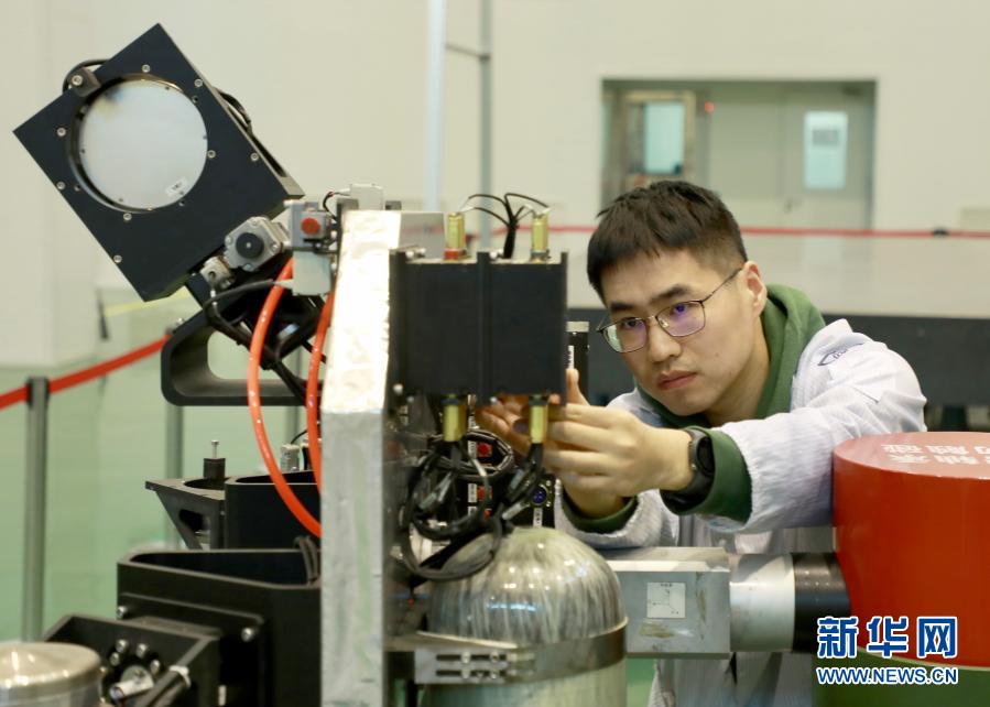 哈爾濱工業(yè)大學(xué)航天學(xué)院博士研究生吳凡調(diào)試微納衛(wèi)星實(shí)驗(yàn)設(shè)備(11月9日攝)。新華社記者 何山 攝