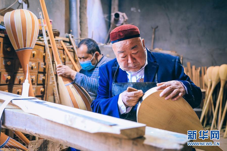 在村里,艾依提·依明與其他幾位“非遺”傳承人,不僅是技藝傳播者,也是致富帶頭人。因為艾依提·依明制作的樂器音節(jié)準(zhǔn)、音色美、造型漂亮,深受市場歡迎,附近很多村民慕名前來拜師學(xué)藝。他回憶,幾十年來,他已帶出200多名徒弟,這些來自貧困家庭的農(nóng)村年輕人通過幾年學(xué)習(xí),基本都可以靠樂器制作、維修、演奏實現(xiàn)增收。