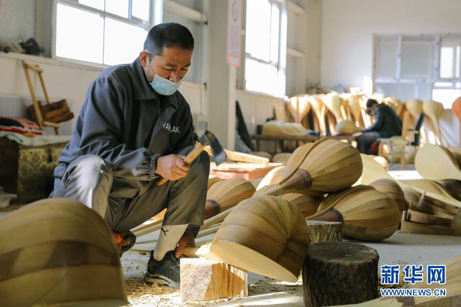 村民在加依村樂器制作農(nóng)民專業(yè)合作社制作民族樂器(11月12日攝)。新華社記者 張曼 攝