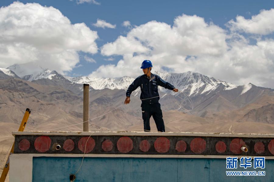 在新疆喀什地區(qū)塔什庫(kù)爾干塔吉克自治縣,工作人員為當(dāng)?shù)剞r(nóng)戶鋪設(shè)入戶光纖(6月10日攝)。目前,喀什地區(qū)已實(shí)現(xiàn)光纖入戶全覆蓋。新華社記者 胡虎虎 攝